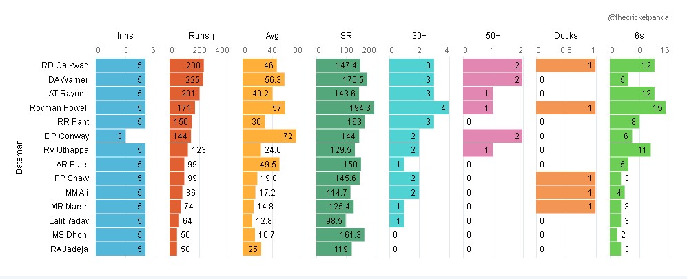 Rovman Powell: Promoted to no 4 against Eng in the t20i series in Jan, Powell smashed a scintillating 100 and announced his comeback in the national side in style. There were expectations of similar fireworks in IPL, but he failed in the 1st half. His entry point were questionable in few games since he is still vulnerable against leg spin but he has played 4 back to back amazing knocks and scored 171(87).