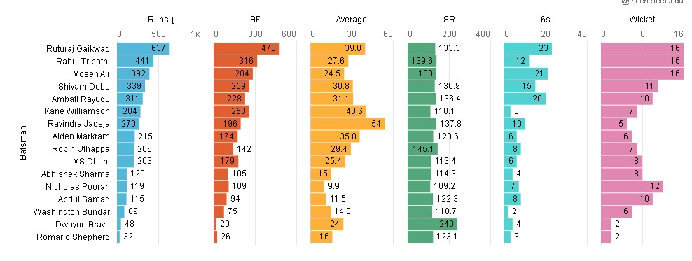Ruturaj Gaikwad: 635 runs in IPL 2021. This was a record breaking season for the youngster who scored most runs in an edition by an uncapped player and won the Orange cap. Ruturaj has been in terrific form since then. He was the top scorer in VHT with 603 runs at an average of 150 and scored 259 runs in SMAT at an average of 51 and a SR of 149. His start this season hasn't been a good one just like the previous 2 editions.