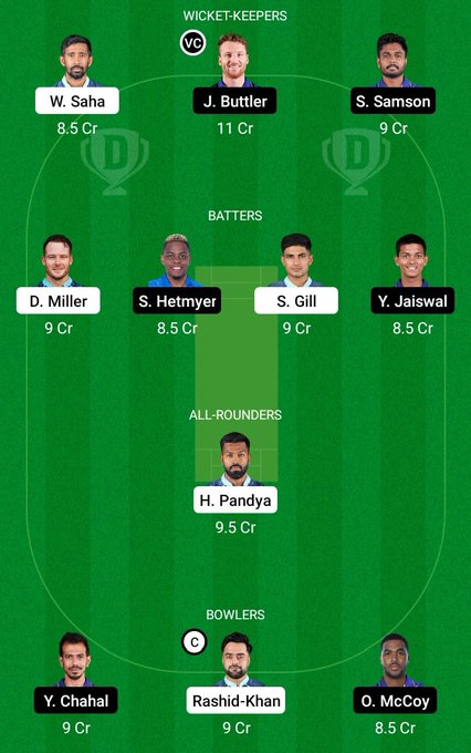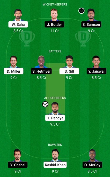 Shubhman Gill, Wriddhiman Saha, Matthew Wade / Rahmanullah Gurbaz, David Miller, Hardik Pandya (c), Rahul Tewatia, Rashid Khan, R Sai Kishore, Alzarri Joseph, Mohammad Shami, Yash Dayal
