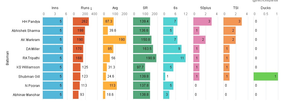 Abhishek Sharma - 220 runs at SR of 125 while opening the batting