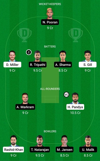 Kane Williamson (c), Abhishek Sharma, Rahul Tripathi, Nicholas Pooran, Aiden Markram, Shashank Singh, Abdul Samad/Jagdish Suchith, Marco Jansen, Bhuvaneshwar Kumar, Umran Malik, T Natarajan