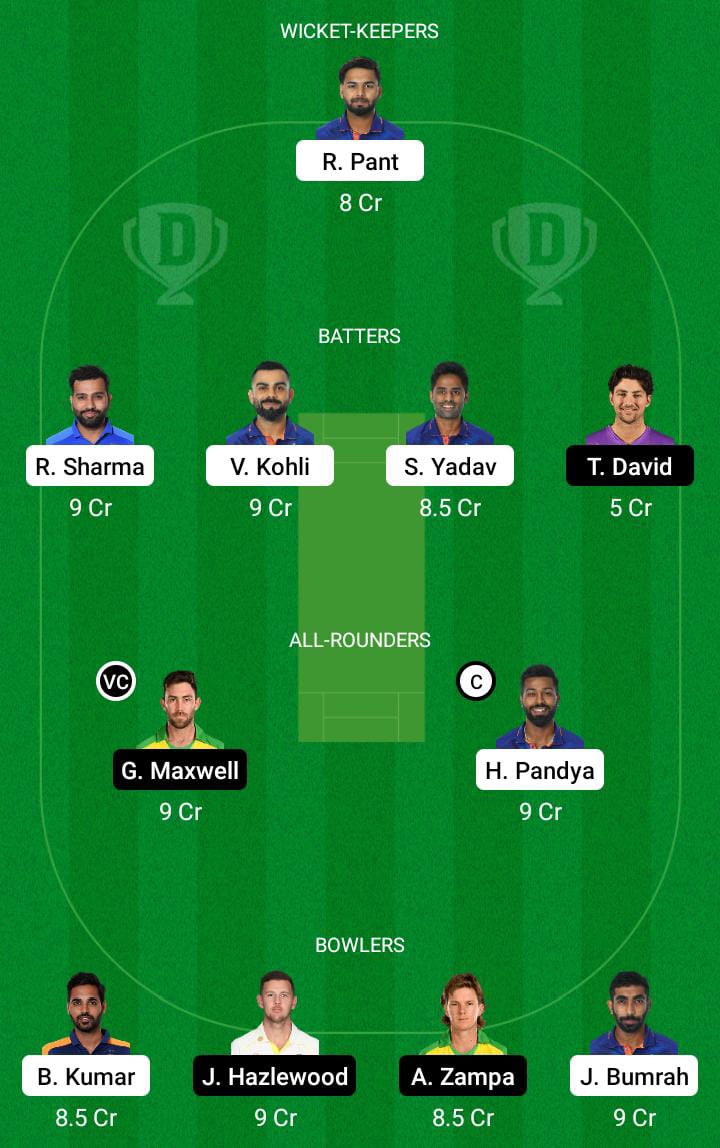 Aaron Finch, Matthew Wade, Steve Smith, Glenn Maxwell, Tim David, Cameron Green, Daniel Sams, Ashton Agar, Pat Cummins, Adam Zampa, Josh Hazlewood