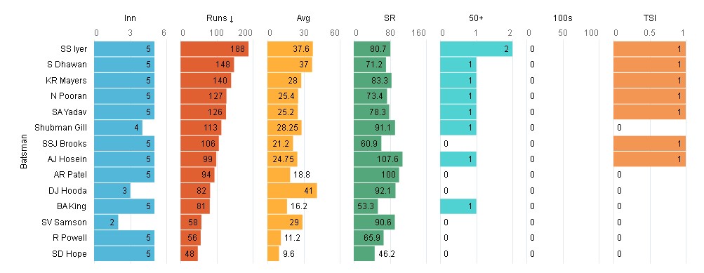 Nicholas Pooran: He is averaging 17 this year in ODIs but had an amazing t20i series against Ind earlier this year and a decent IPL against these bowlers,