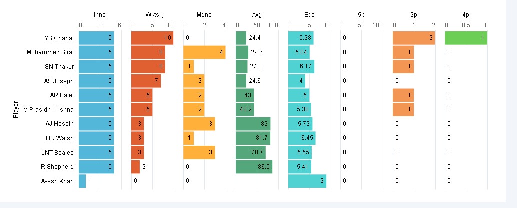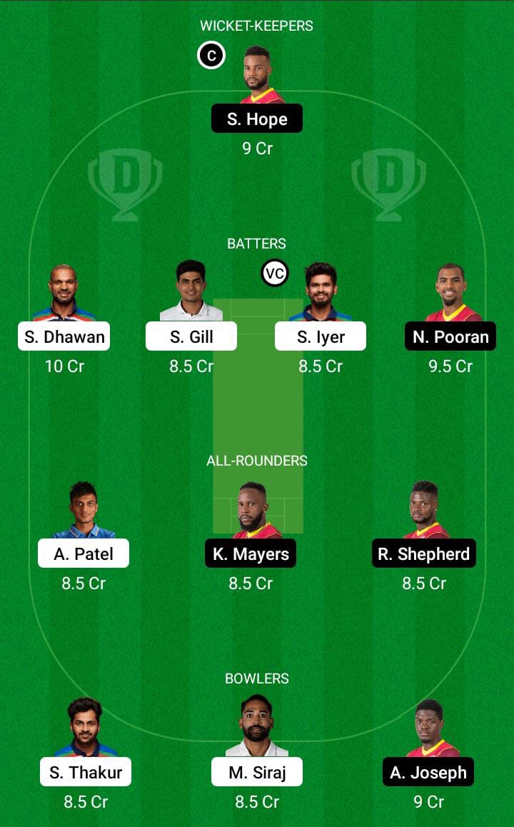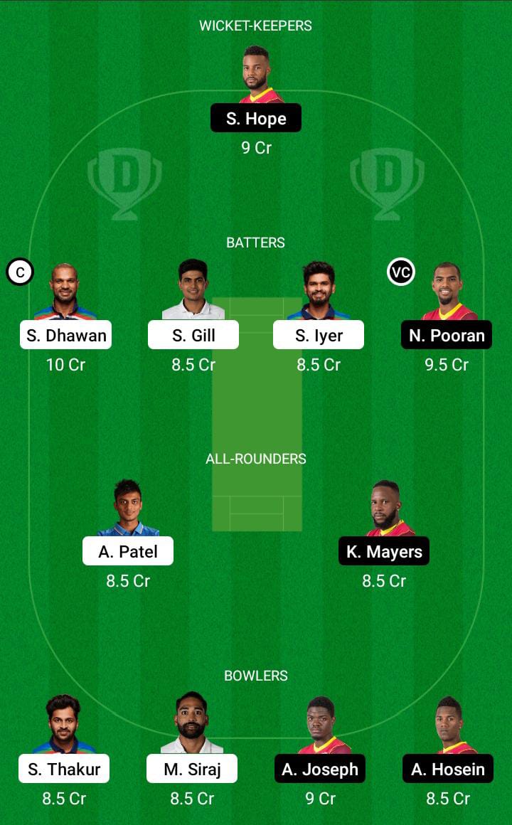 Yuzvendra Chahal: He has been one of the consistent spinners in this format in last 5 years. He took a 4 wkt haul against Eng in the 2nd ODI and with that now has a 4 wkt haul in 3 out of the 4 SENA countries with a career best figures of 6/42 in AUS. He had a tough outing in last game going for almost 8 an over but given the struggles of few WI batters against leg spin he'll be having a huge role to play in middle overs.