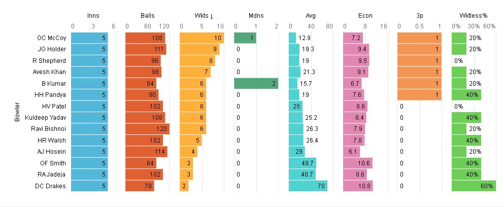 Obed McCoy: He registered the 3rd best figures by a left arm pacer in t20is in the 2nd game. And the 2nd best figures for a seamer by a player from a top 10 team.