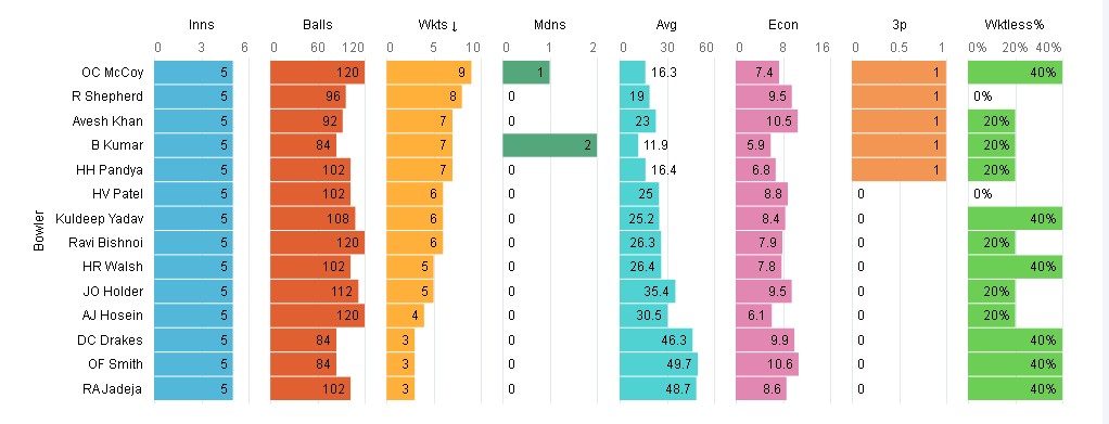 Obed McCoy: He registered the 3rd best figures by a left arm pacer in t20is in the 2nd game. And the 2nd best figures for a seamer by a player from a top 10 team.