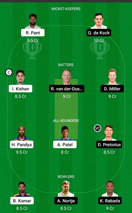 Ruturaj Gaikwad, Ishan Kishan, Shreyas Iyer, Rishabh Pant (c, wk), Hardik Pandya, Dinesh Karthik, Axar Patel, Bhuvnenshwar Kumar, Harshal Patel, Avesh Khan, Yuzvendra Chahal