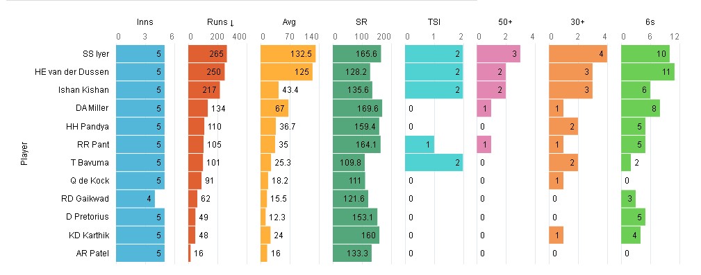 David Miller is in the form of his life. There is nothing that he can't do with the bat on a cricket field these days. Not so long ago he was dropped from the ODI squad against SL and it looked like his white ball career for the proteas is nearing an end. But he made a technical adjustment to his game especially against spin and has emerged as one of the most dangerous white ball players in the world. Along with RVD, he powered SA to a 7 wkt victory and chased down the highest total for SA in t20is. Meanwhile, he also went past AB de Villiers to win the most MoM awards for SA in t20is ( 8). SA continued their dominance over India this year by winning 6th consecutive game across formats. They are one of the strongest t20i units since the last 12 months and narrowely missed out on the semis spot in the t20 world cup. SA will miss the services of Aiden Markram who is out with Covid. In the past one year, Markram has scored 570 runs for SA at a SR of 148. He had a very good outing in t20 wc and was featured in ICC's team of the tournament. Markram is also a useful part time off spinner and does the job well in Powerplay