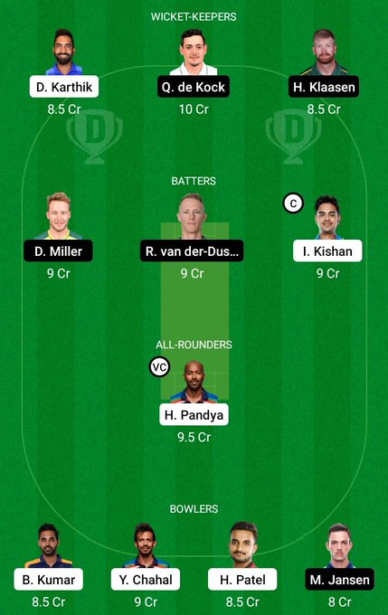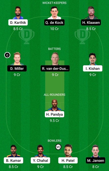 Ruturaj Gaikwad, Ishan Kishan, Shreyas Iyer, Rishabh Pant (c, wk), Hardik Pandya, Dinesh Karthik, Axar Patel, Bhuvnenshwar Kumar, Harshal Patel, Avesh Khan, Yuzvendra Chahal