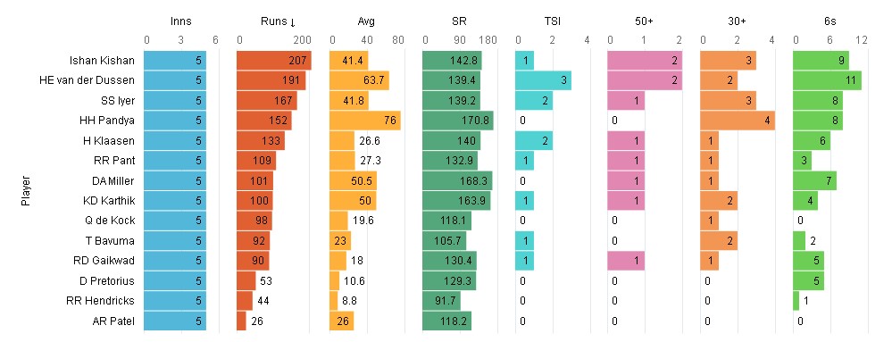 Ishan Kishan: He has the most runs for an Indian opener in first ten t20i innings (375) and scored over 80 runs against Nortje in the format with over 200 SR. So far he has shown a good intent in 3/4 games compared to the underwhelming IPL season he had. He has the most runs in PP for India in 2022.