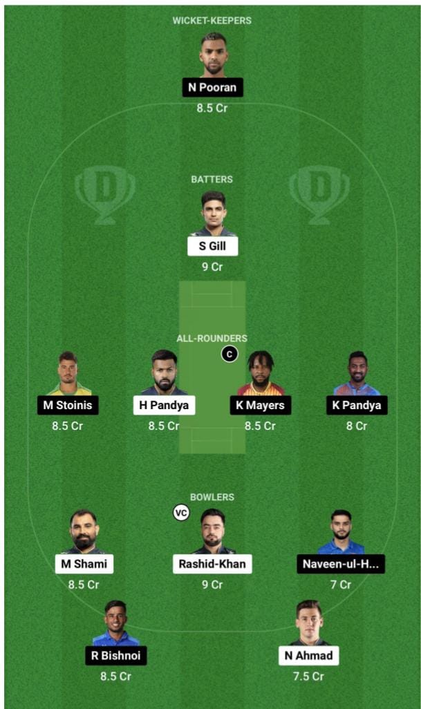 Currently, the best option for the team would be to open with Kyle Myers and Quintin de Kock. For the remaining overseas slots, Nicholas Pooran and Marcus Stoinis are the likely candidates, while the Super Giants can look to their local players for the pace attack.