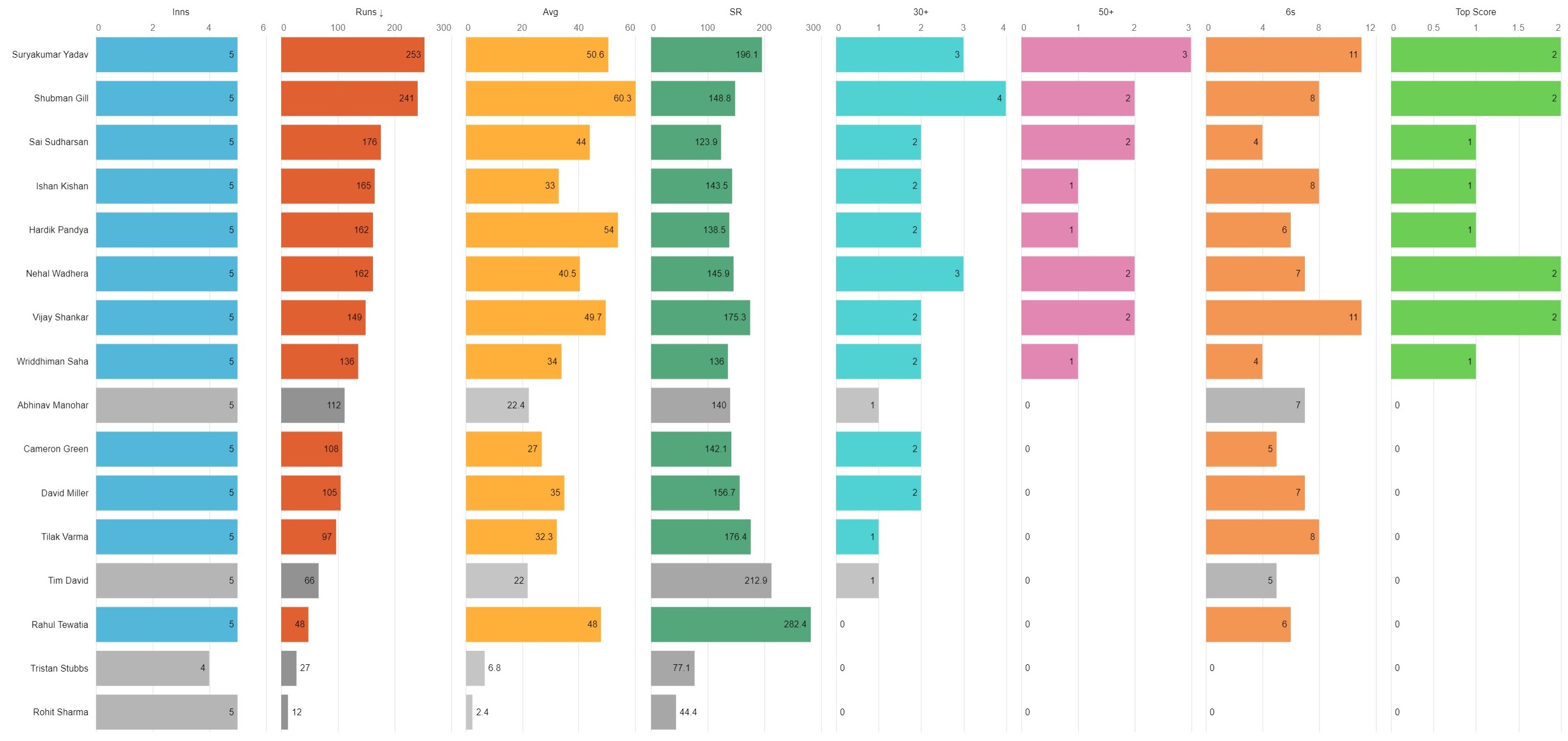Shubman Gill : Currently he is the leading run scorer for Titans. In Last Match he won Man of the match award for his unbeaten 94*, In last 2 Innings against Mumbai, He scored half century on both occasion