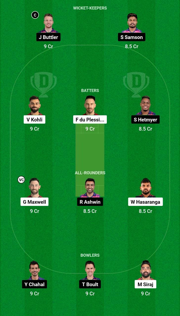 Yashasvi Jaiswal, Jos Buttler, Devdutt Padikkal, Sanju Samson, Shimron Hetmyer, Dhruv Jurel, Ravichandran Ashwin, Jason Holder, Trent Boult, Yuzvendra Chahal, Sandeep Sharma