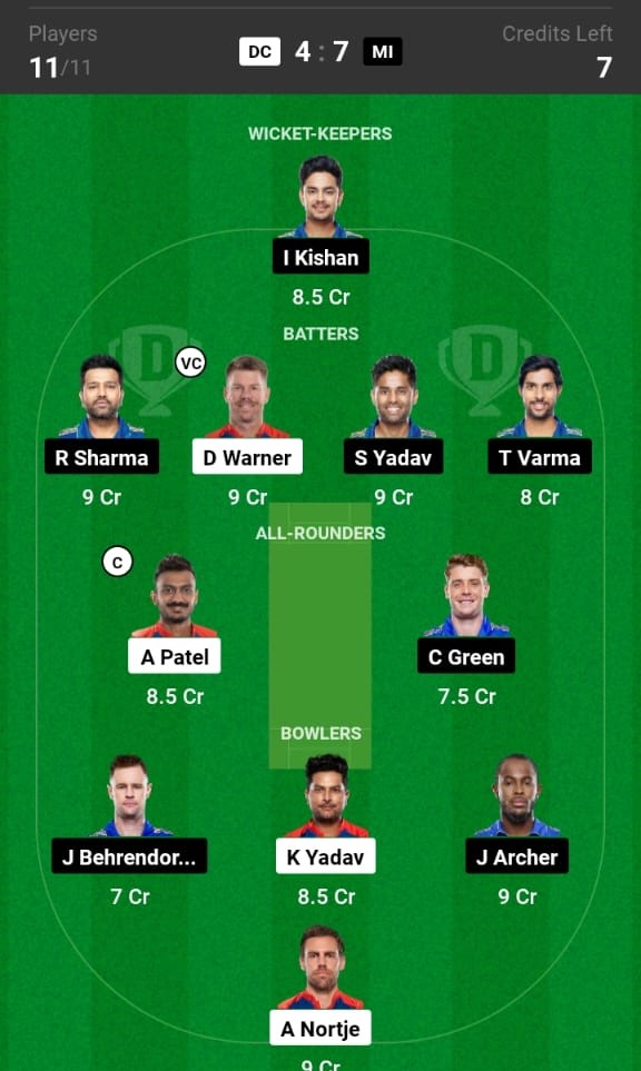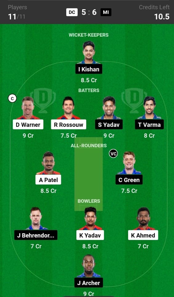 Probable XI : Rohit, Ishan, Green, Surya, Tilak, Tim David, Ramandeep, Jofra, Karthikeya, Chawla, Behrendorff