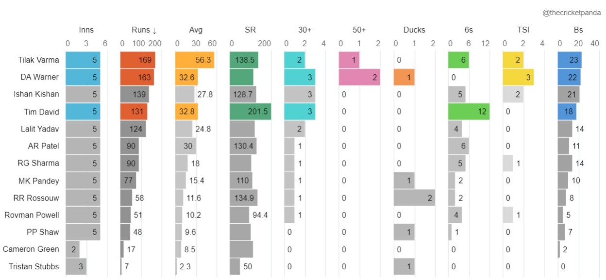 Tilak Varma : Star boy of Mumbai Indians & one of the most promising young talents. He has an average of 41.92, SR of 137.06
