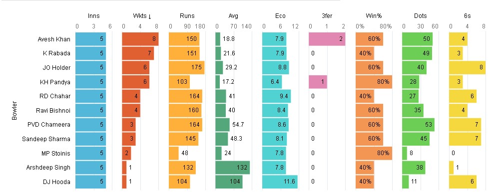 Jason Holder: One of the most improved t20 cricketers in the recent times. Holder adds immense value to this Lucknow side both with the bat and the ball. He has taken 9 wkts at an eco of 8.7 and all the wkts have come in the middle and the death overs.