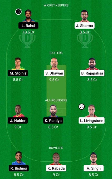 Mayank Agarwal(c), Shikhar Dhawan, Bhanuka Rajapaksa, Jonny Bairstow(wk), Liam Livingstone, Jitesh Sharma, Rishi Dhawan, Kagiso Rabada, Sandeep Sharma, Rahul Chahar, Arshdeep Singh