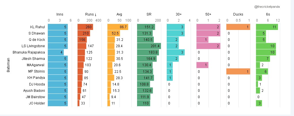 KL Rahul: 2917 runs at a SR of 140. No one has scored more runs than him since 2018. KL has put consistent 500+ runs seasons for 4 times in a row. He is the 2nd highest run scorer of the season with 368 runs at 61 avg and 147 sr with 2 100s.