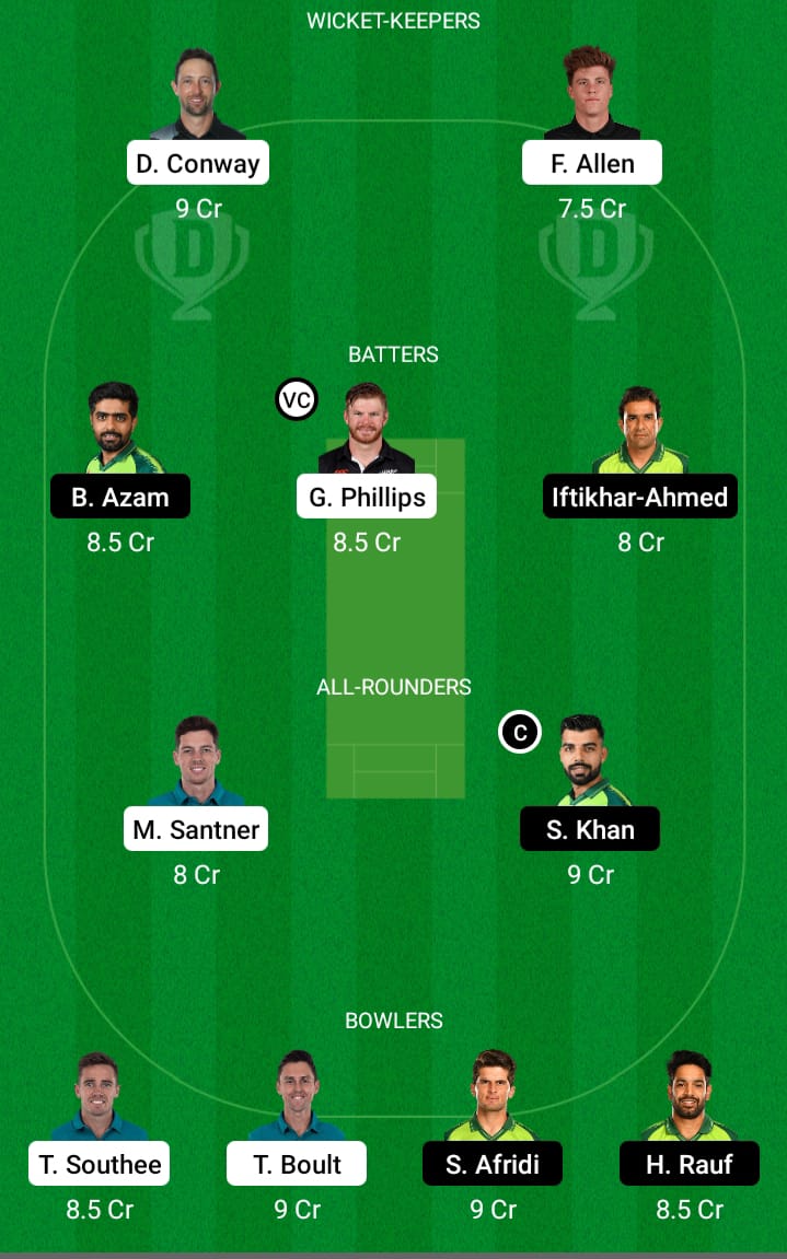Finn Allen, Devon Conway, Kane Williamson, Glenn Phillips, James Neesham, Mark Chapman, Mitchell Santner, Tim Southee, Ish Sodhi, Lockie Ferguson, Trent Boult