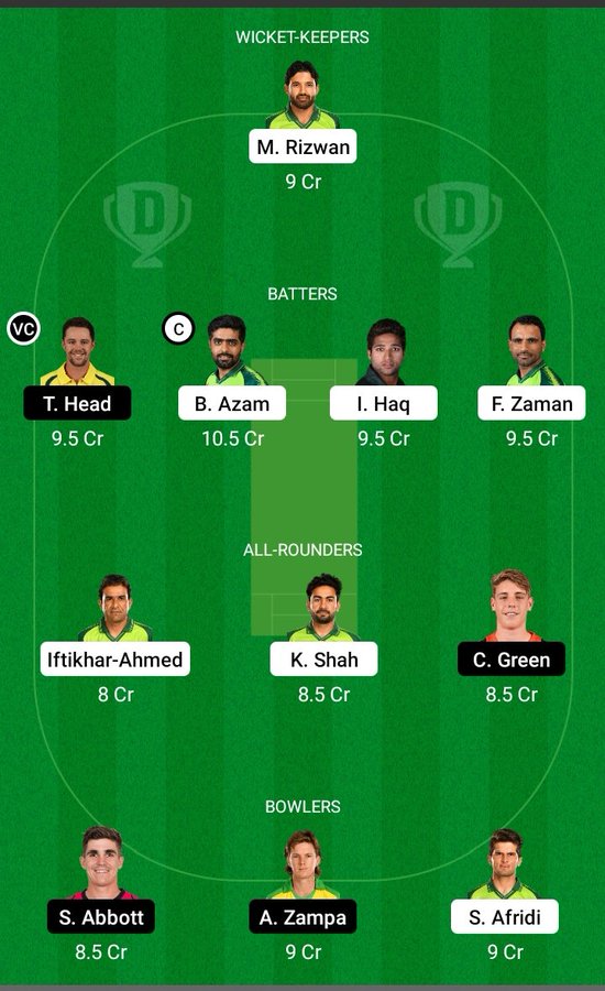 Imam-Ul-Haq, Fakhar Zaman, Babar Azam (c), Mohammad Rizwan (wk), Saud Shakeel, Iftikhar Ahmed, Khushdil Shah, Shadab Khan, Haris Rauf, Shaheen Shah Afridi, Mohammad Wasim Jnr