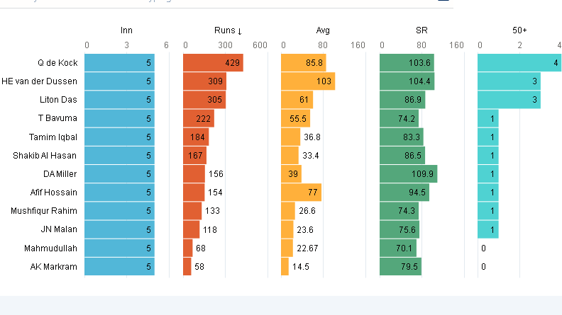 Quintion de Kock vs Shakib al Hasan: 56 runs for 1 dismissal