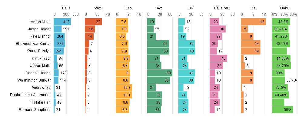 Avesh Khan:He broke the headlines when he became the most expensive uncapped player in the history of IPL when he was bought by LSG for 10 crores. Last IPL was a breakthrough season for this pacer from Madhya Pradesh. He took the 2nd most wickets (24) at an esteemed economy of 7.4. That was the 2nd best economy for a pacer after Siraj and only second to Yuzi Chahal if we consider minimum 15 wickets criteria. He took 10 wickets at the death at an economy of 8.9. He has been a touch expensive in the 1st games of this season.