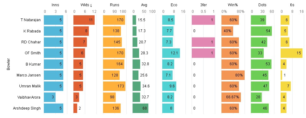 T Natarajan: He has picked 11 wickets from 5 games at an economy of 8.5