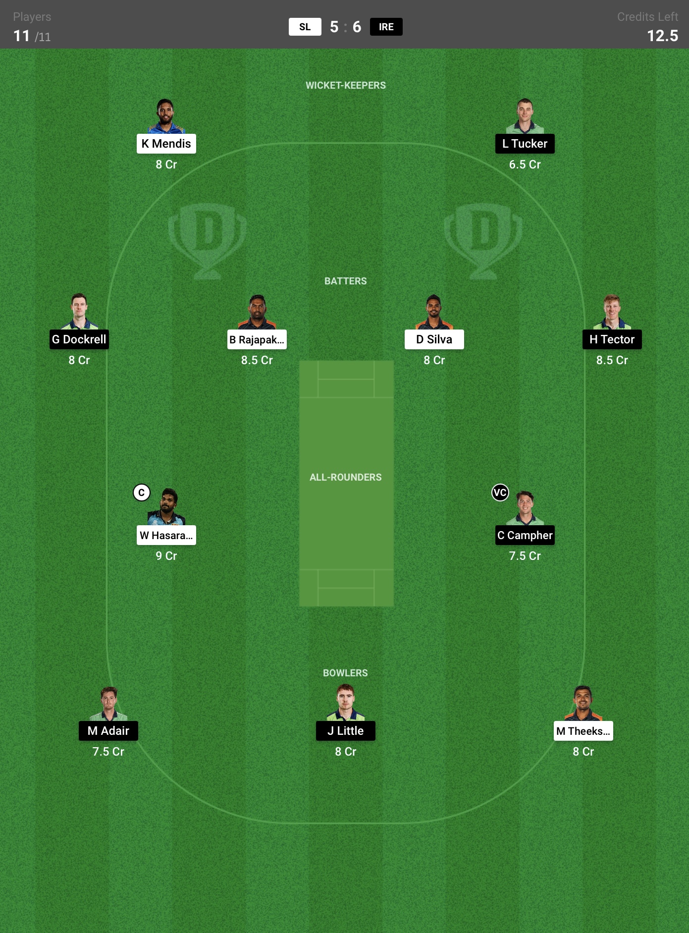 >Core Team: Kusal Mendis, Hasaranga, Campher, Dhananjaya, Tucker