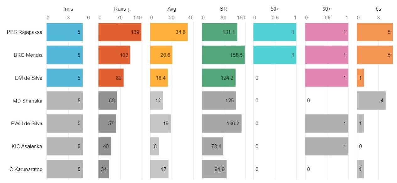 Sri Lanka: Kusal Mendis, Bandara, Dhananjaya de Silva, Asalanka, Rajapaksa, Shanaka, Hasaranga, Karunaratne, Binura Fernando, Kumara, Theekshana